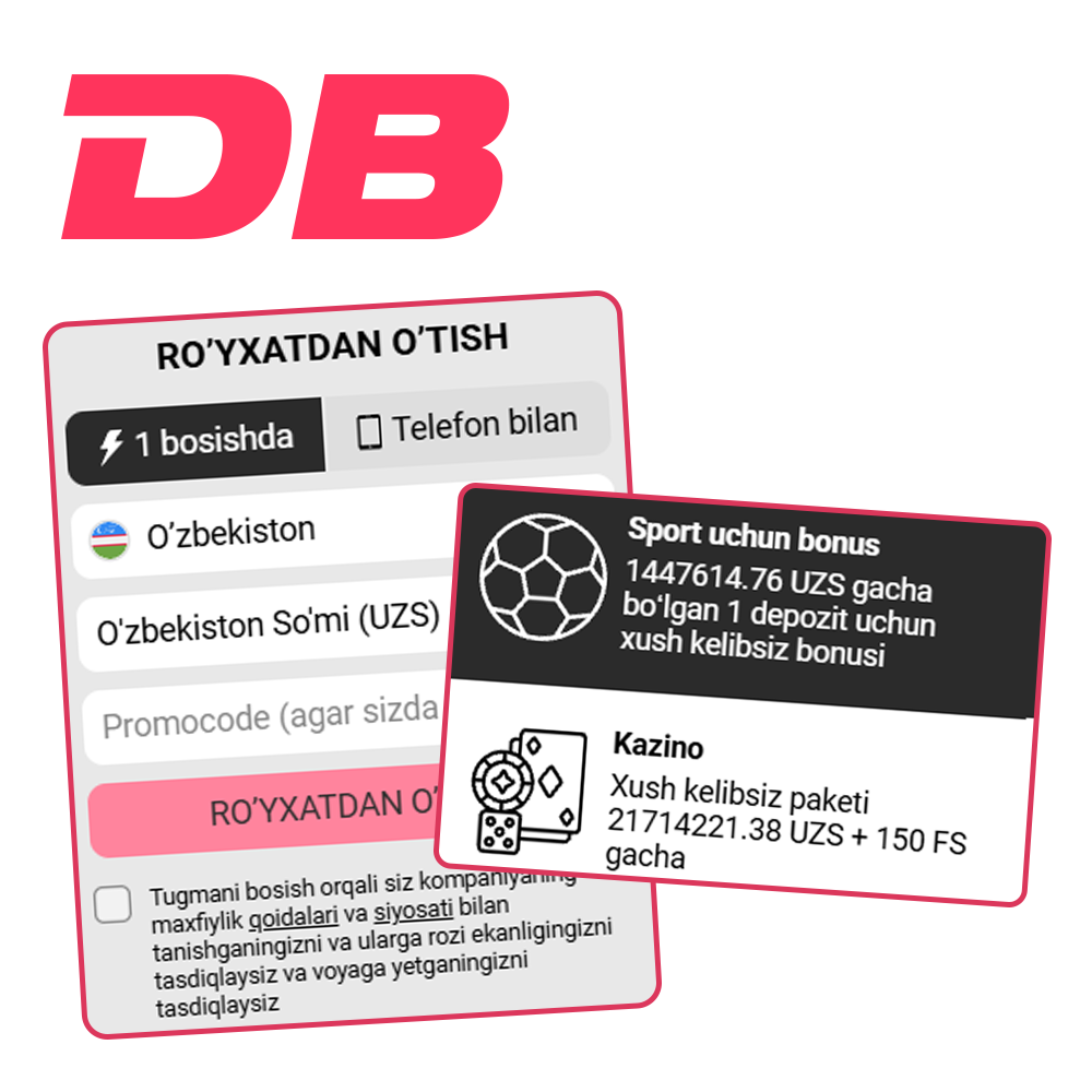DBbet ro‘yxatdan o‘tish O‘zbekistondan 18 yosh va undan katta bo‘lgan barcha foydalanuvchilar uchun mavjud. Hisobingizni hech qanday muammosiz yaratish uchun ushbu oddiy qo‘llanmaga amal qiling.